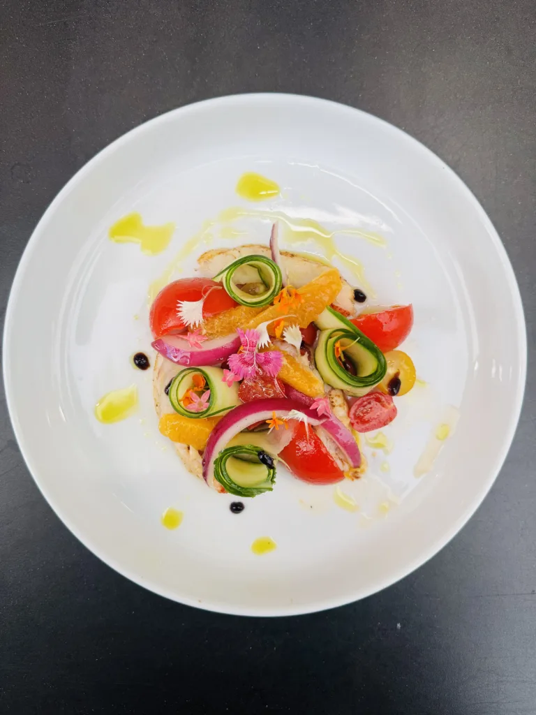 7 oz Poached Lobster, Heirloom Tomato, Pickle Red Onions, Cucumber, Orange Agrumato Champagne Vinaigrette