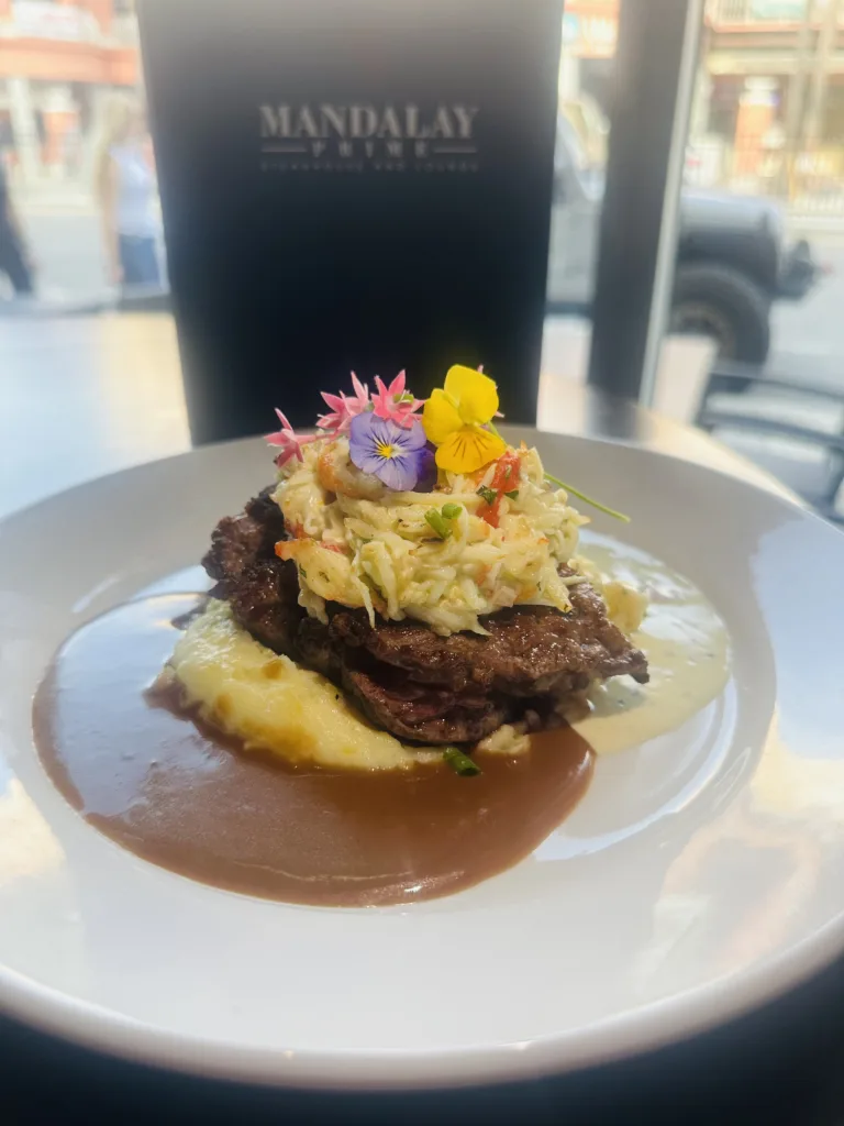 Mandalay Prime blends sleek, contemporary design with touches that feel familiar—soft lighting, relaxing tones, thoughtfully selected décor—to create a space that welcomes both locals and visitors. Our lounge pulses with good conversation, laughter, and the hum of diners enjoying themselves. This is not just a steakhouse—this is a place where you can be fully present, comfortable, and delighted.